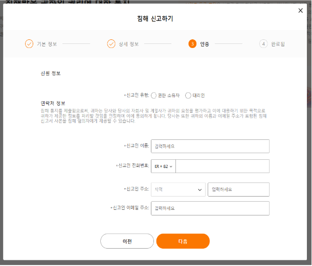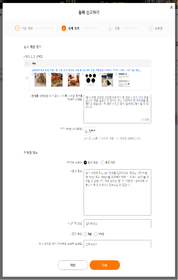 침해 제품 정보 및 저작권 정보를 입력합니다.