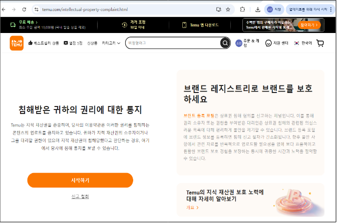 위조상품이 여러 건이거나, 지속적인 모니터링이 필요한 상황이라면 테무 공식 IPP(Intellectual Property Protection) 포털을 이용하는 게 훨씬 효율적입니다.
